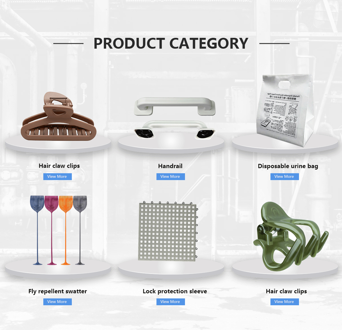 Productos principales:Bolsa de orina desechable, pinzas para pelo, pasamanos, matamoscas